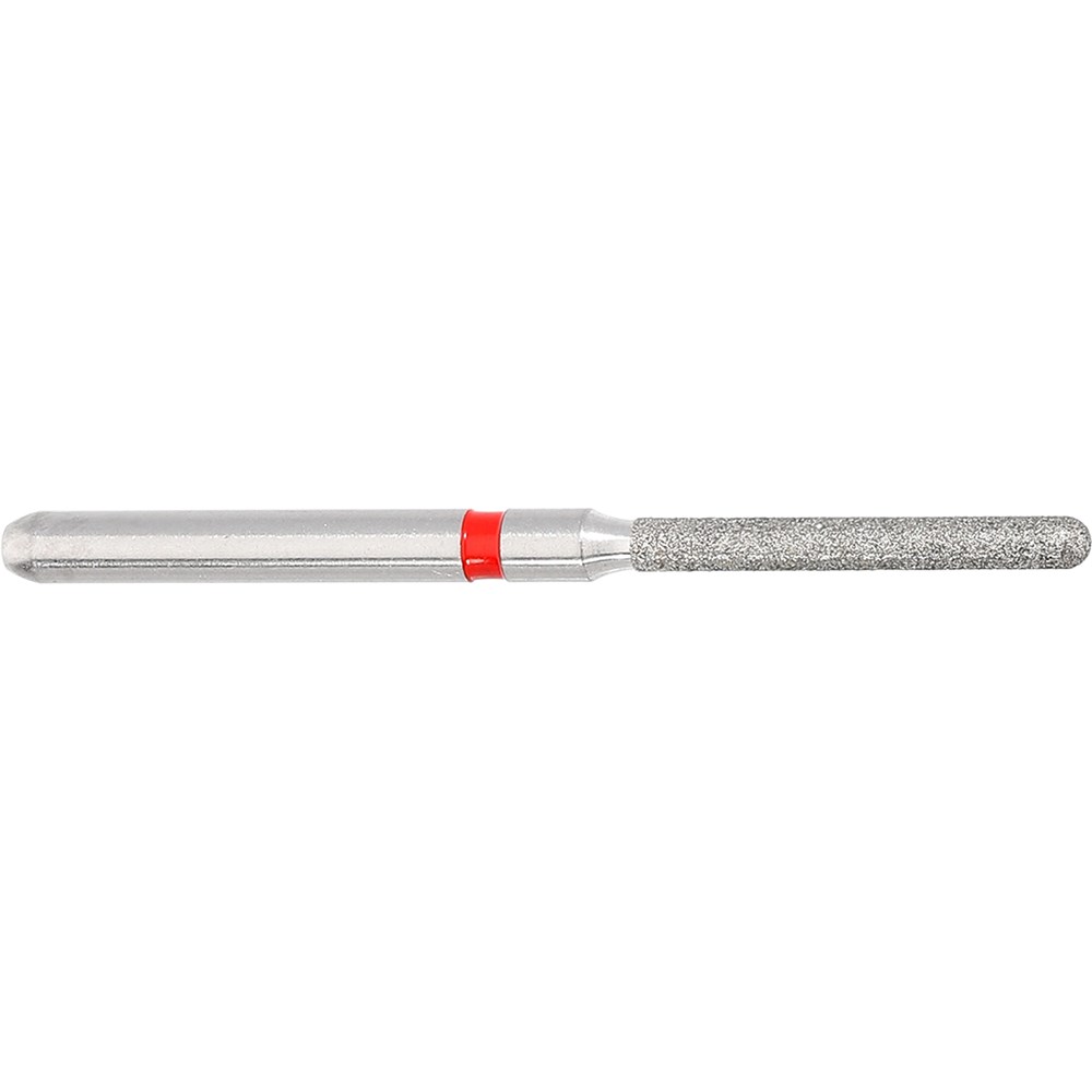Fine grit, long parallel chamfer rounded edge, friction grip diamond used for finishing crown preparation. Size 012, with length 10.0mm.