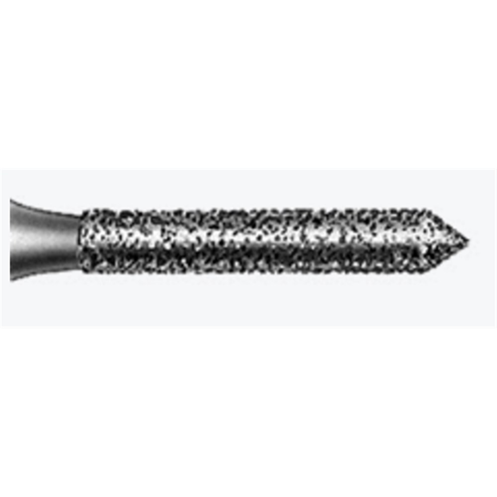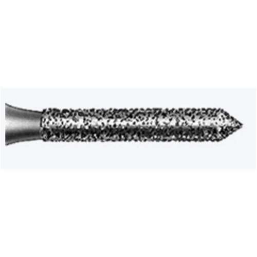 Crown Preparation, finishing diamond cylinder with beveled tip, fine grit, FG 314, 012 diameter and 8mm working length.