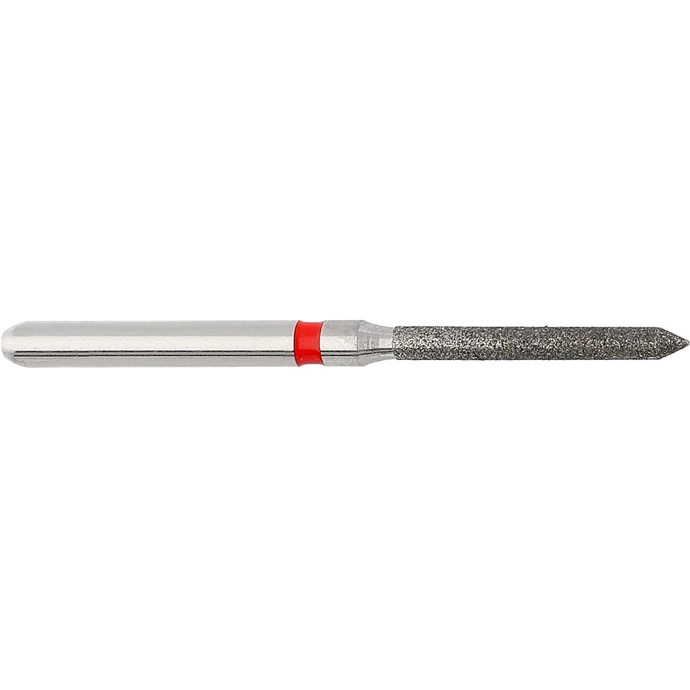 Crown Preparation, finishing diamond cylinder long with beveled tip, fine grit FG 314, 012 diameter and 10mm working length.