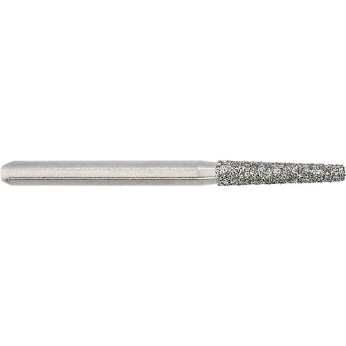 Tapered shoulder, rounded edge with longer total lengths for crown preparations. Medium grit diamond, FG 314, size 016 with working length of 8mm and 2 degree taper.