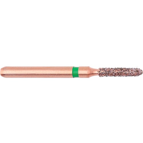 DIAO - KP6877 is a short parallel chamfer, torpedo shaped coarse friction grip diamond used for crown preparation. Head diameter 012 (1.2mm) and 6.0mm working length.