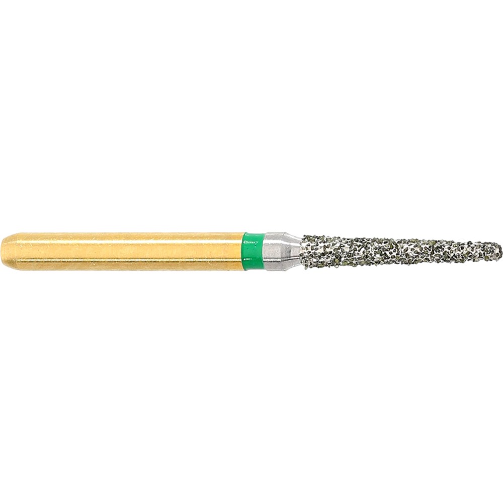 S6847KR coarse tapered shoulder, rounded edge S-Diamond for crown preparation. FG 314, size 014 (1.4mm diameter) with 8mm working length and 2 degree angle. Matches H336 carbide finisher series.