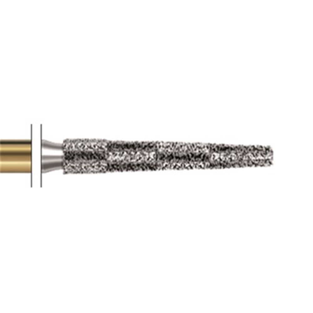 S6848KR coarse long tapered shoulder, rounded edge S-Diamond for crown preparation. FG 314, size 016 (1.6mm diameter) with 10mm working length and 2 degree angle.
