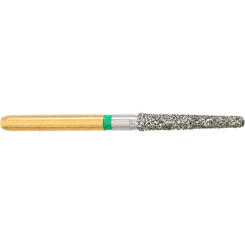 S6848KR coarse long tapered shoulder, rounded edge S-Diamond for crown preparation. FG 314, size 018 (1.8mm diameter) with 10mm working length and 2 degree angle.
