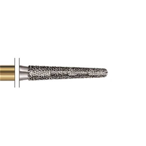 S6856 coarse tapered chamfer, round S-Diamond for crown preparation. FG 314, size 018 (1.8mm diameter) with 8mm working length and 2 degree angle. Matches H375R carbide finisher series.