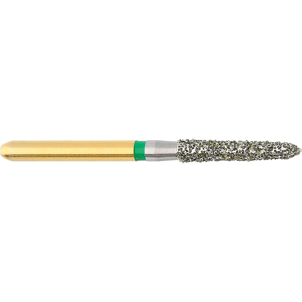 S-Diamond S6886K is a long tapered bur with beveled tip, FG friction grip diamond used for crown preparation. Size 018, with length 9.0mm and 1.5 degree angle.