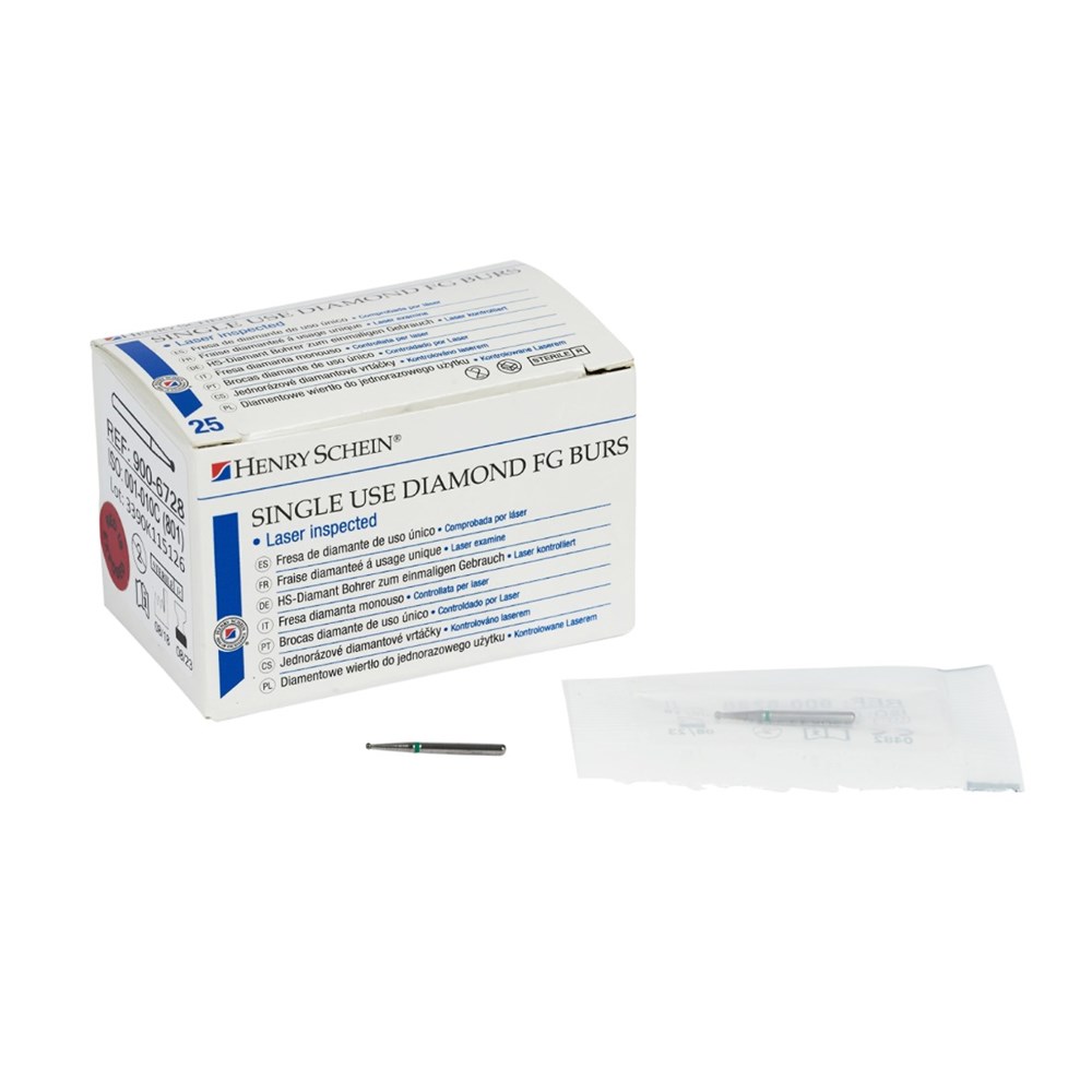 • Henry Schein Diamond Bur - 001-023M - Round - Sterile - Single Patient - High Speed, Friction Grip (FG), 25-Pack
