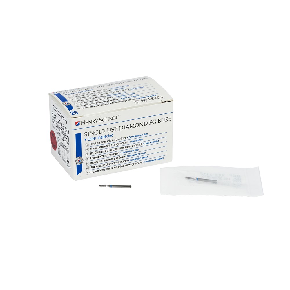 Henry Schein Diamond Bur - 109-008M - Flat Cylinder - Sterile - Single Patient - High Speed, Friction Grip (FG), 25-Pack