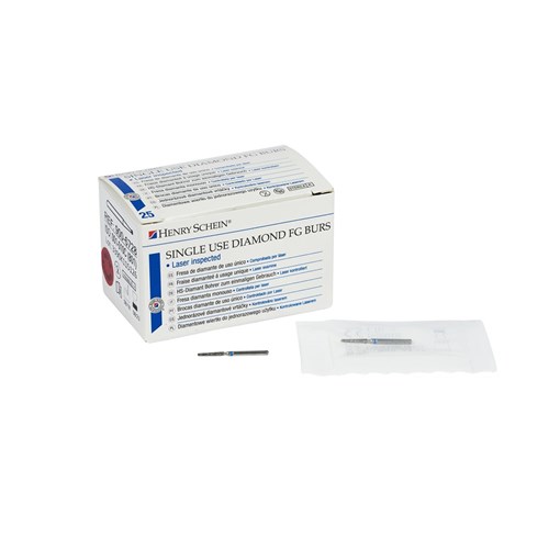 • Henry Schein Diamond Bur - 172-014M - Flat Taper - Sterile - Single Patient - High Speed, Friction Grip (FG), 25-Pack