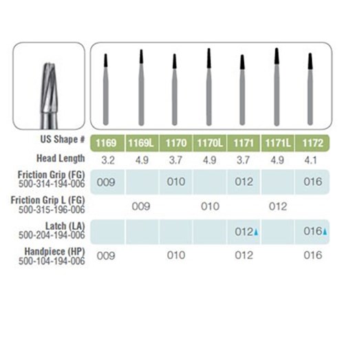 Kerr Jet Tungsten Carbide Bur - 1172-016 - Taper Round Fissure - Latch Type (LA), 100-Pack