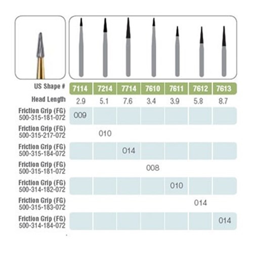 Kerr Jet Tungsten Carbide Bur - 7613 - Tree - High Speed, Friction Grip (FG), 5-Pack