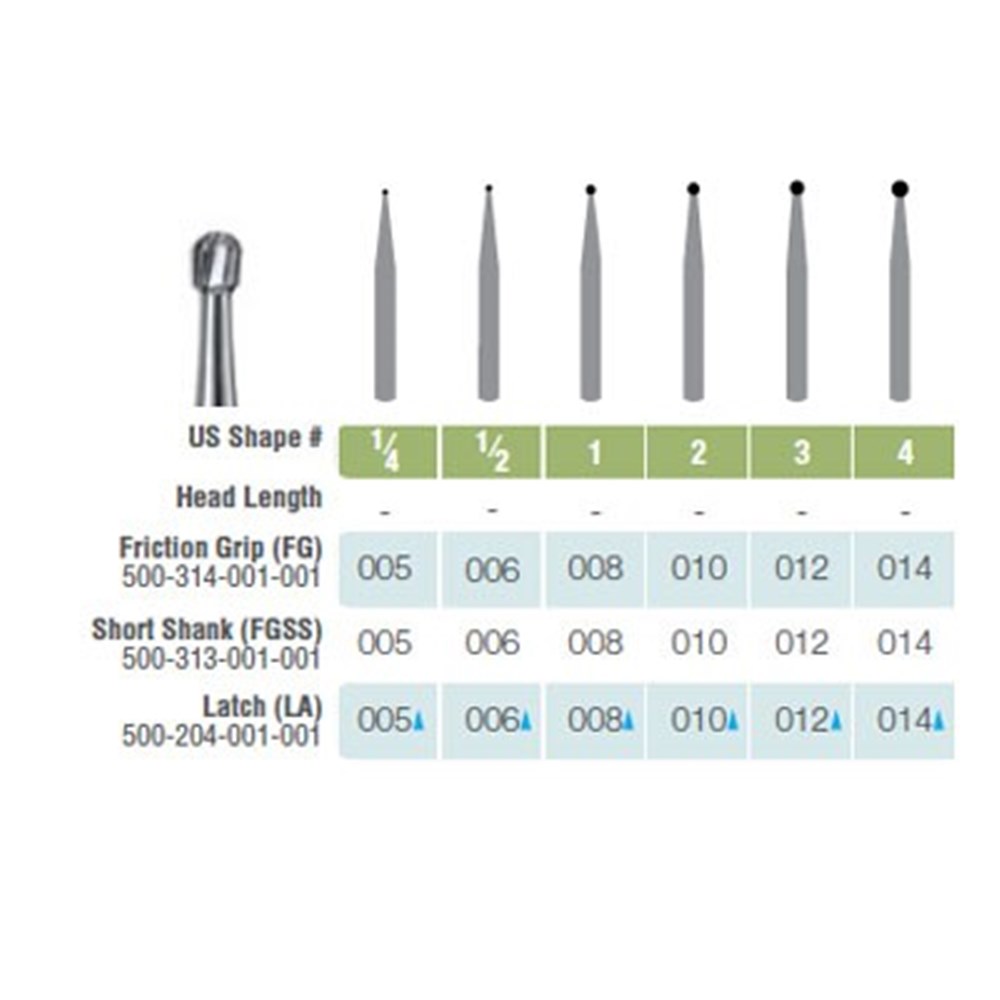 Kerr Jet Tungsten Carbide Bur - LA4-014 - Round - Latch Type (LA), 5-Pack