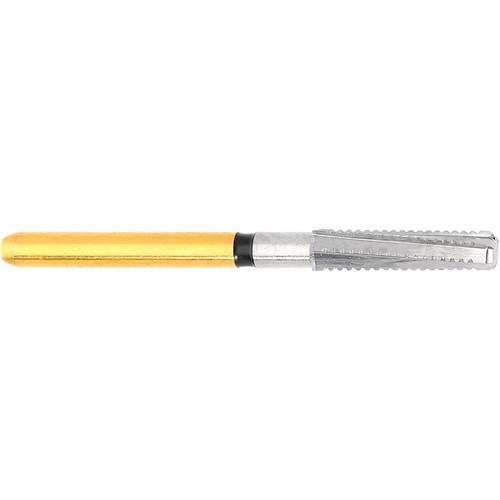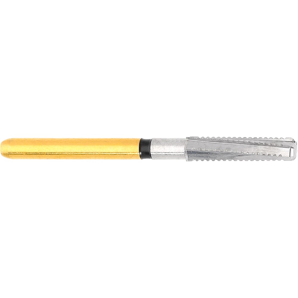 H847KRG tapered shoulder, rounded edge, tungsten carbide for intraoral work on titanium. FG 314 shank, size 020 (2.0mm) diameter with 8mm working length. Matches 847KR diamond series