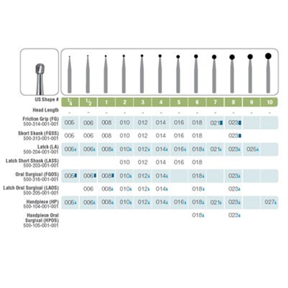 Kerr Jet Tungsten Carbide Bur - 005 - Regular Round - High Speed, Friction Grip (FG), 5-Pack