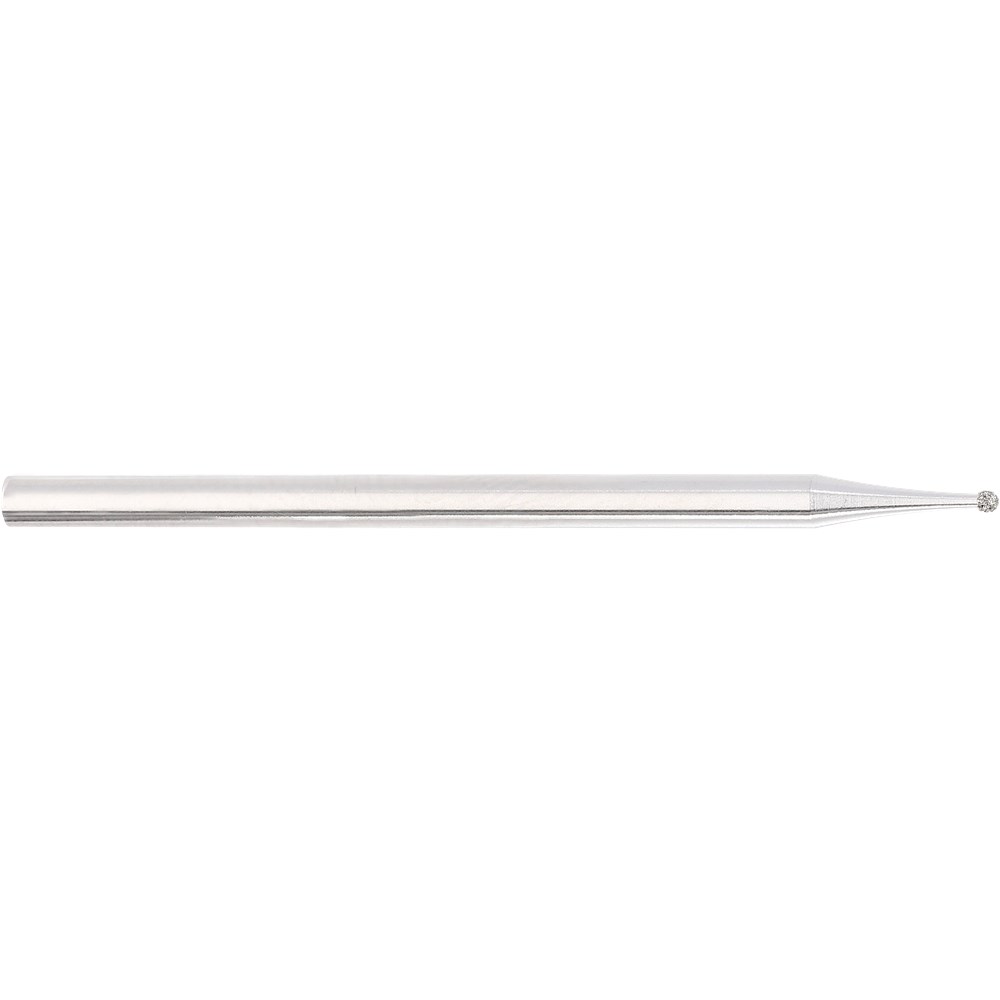 Medium grit round diamond with 104 handpiece shank. Head diameter 010 (1.0mm). Maximum recommended speed 100,000 rpm.