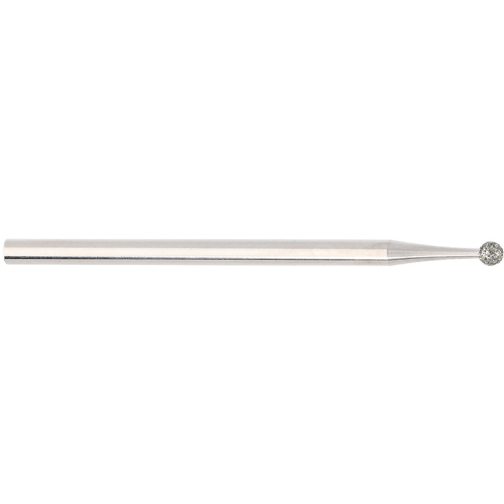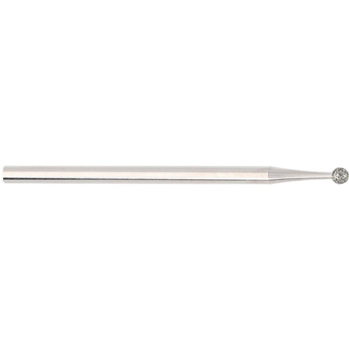Medium grit round diamond with 104 handpiece shank. Head diameter 018 (1.8mm). Maximum recommended speed 100,000 rpm.