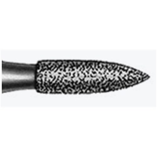 Flame short, medium grit, HP 104 diamond, 012, 1.2mm diameter with 5mm working length.