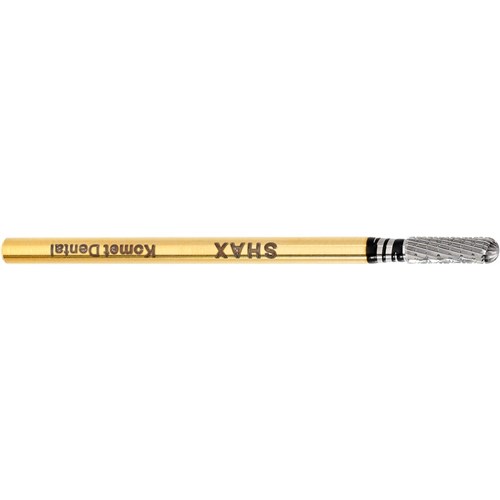 SHAX laboratory tungsten carbide cutter H129SHAX, HP 104 shankfor straight lab handpiece, size 023 (2.3mm) diameter with 8mm working length. For non-precious metal and model cast alloys. Shax are a new generation of tungsten carbide cutters, for work on non-precious metals. The active part is provided with a unique blade geometry where each tooth has its own individual height and depth. These cutters remove large amounts of material while creating a perfectly smooth finish on metal surfaces.