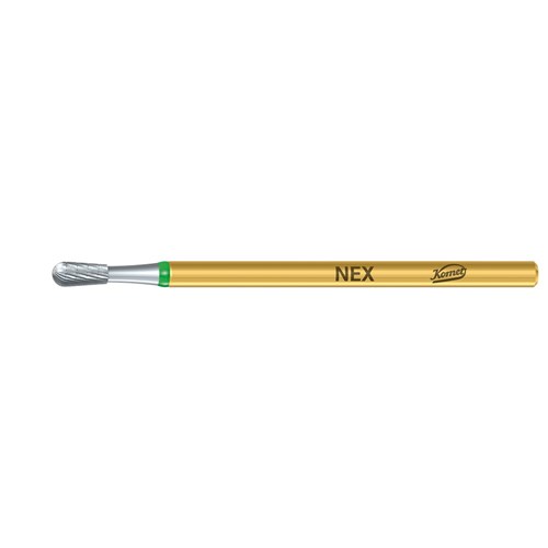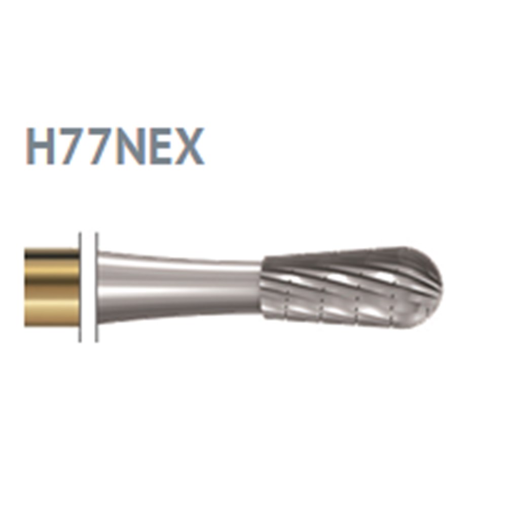 H77NEX pear, tungsten carbide. HP 104 shank for laboratory handpiece Size 023 (2.3mm) diameter with 5mm working length. For non-precious metal and model cast alloys.