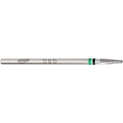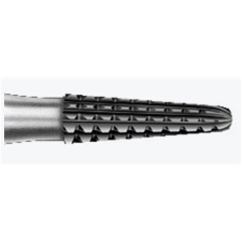 Laboratory tungsten carbide cutter H138GSQ, HP 104 shankfor straight lab handpiece, size 023 (2.3mm) diameter with 8mm working length. For soft acrylics.