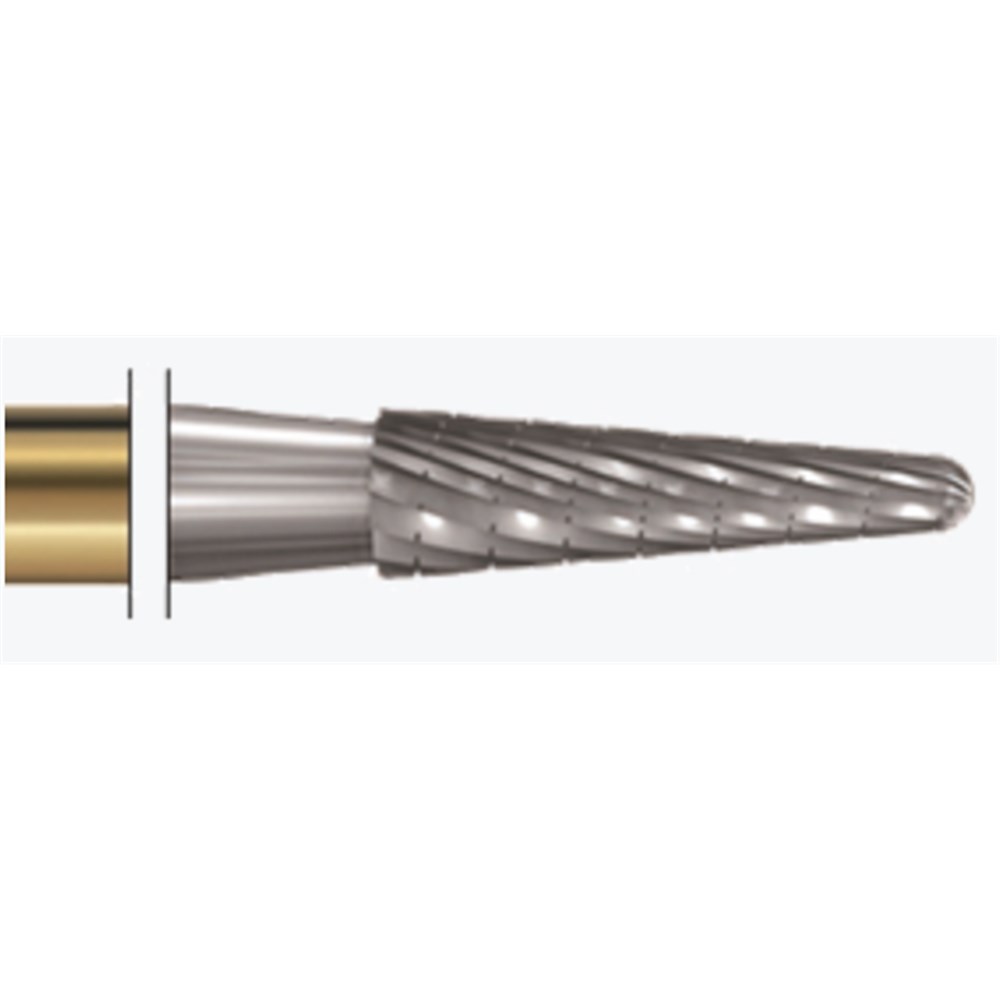 Laboratory tungsten carbide cutter H138NEX, HP 104 shank for straight lab handpiece, size 023 (2.3mm) diameter with 8mm working length. For non-precious metal and model cast alloys.