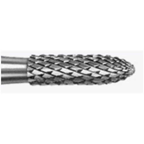 Laboratory tungsten carbide cutter H139E, HP 104 shank for straight lab handpiece, size 023 (2.3mm) diameter with 8mm working length. For acrylics and metal alloys.