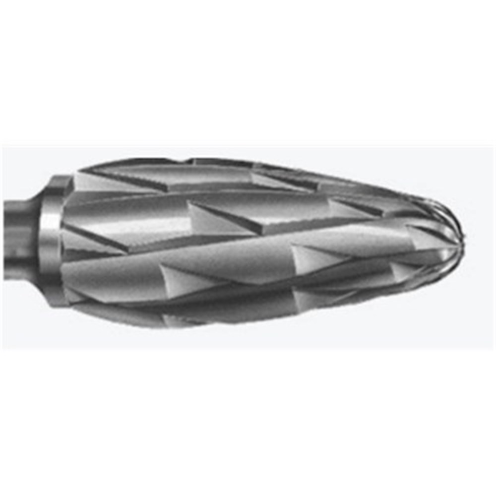 Laboratory tungsten carbide cutter H251SGEA safety toothing with a twist to the left, for work on plaster. HP 104 shank for lab straight handpiece, size 060 (6.0mm) diameter with 14mm working length.