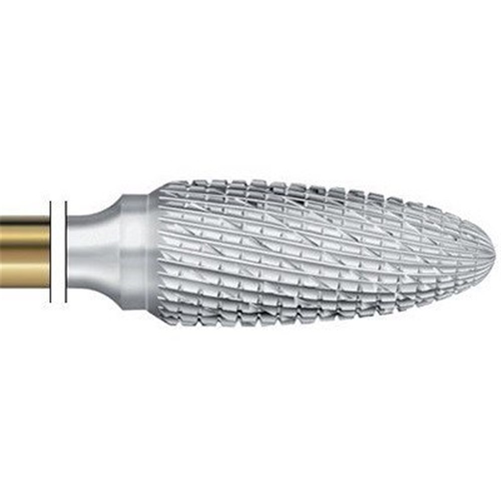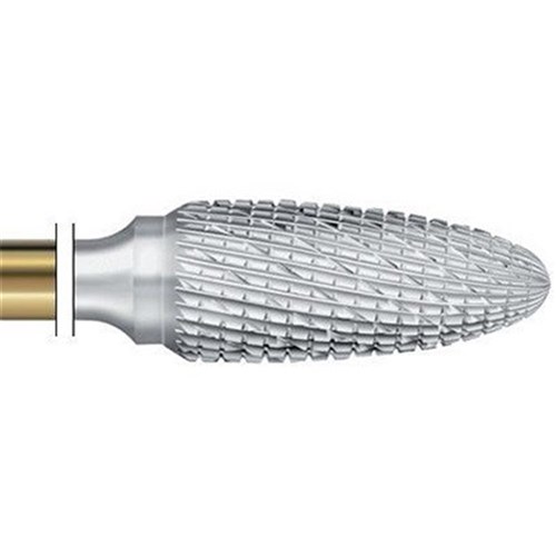 Laboratory tungsten carbide cutter H251UM long football, for working on non-precious metal, precious metal and model cast alloys. HP 104 shank for straight lab handpiece, size 060 (6.0mm) diameter with 14mm working length.