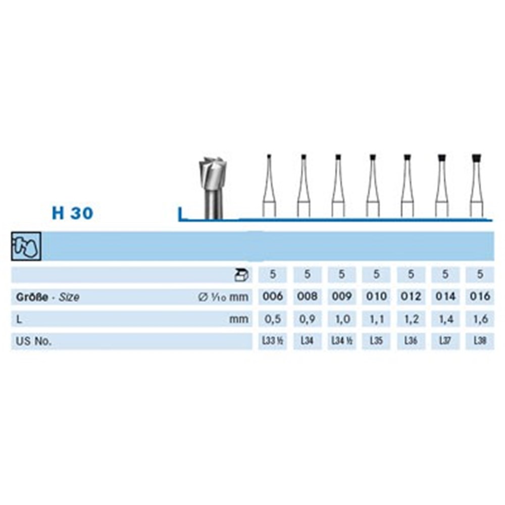 Komet Tungsten Carbide Bur - H30-008 - Inverted Cone - Straight (HP), 5-Pack