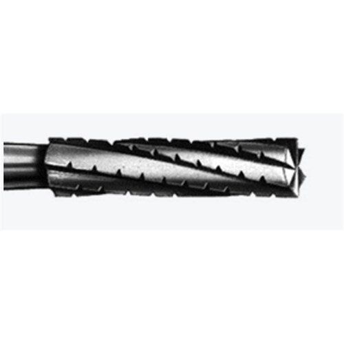 H31L cylinder long with cross cut, laboratory tungsten carbide cutter. HP 104 shank for laboratory straight handpiece, size 012 (1.2mm) diameter with 6mm working length. US number 558L