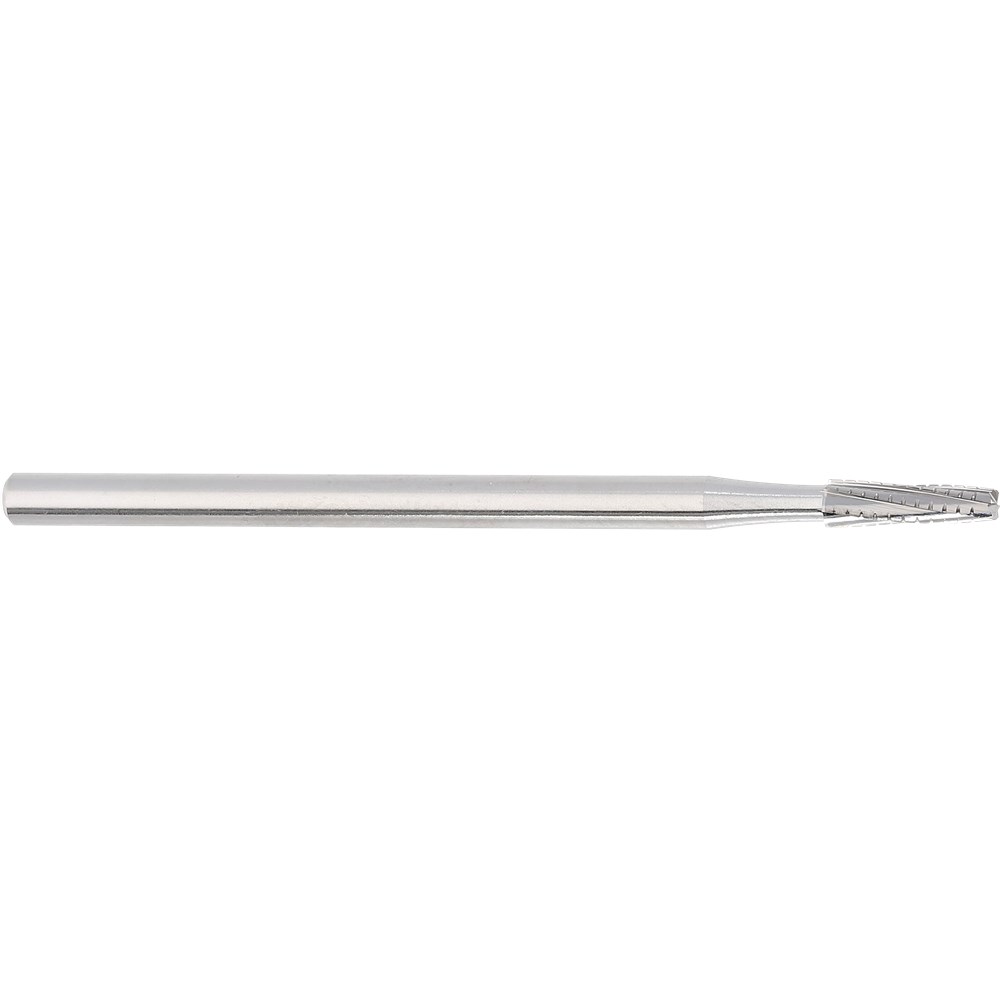 H33L tapered long with cross cut, laboratory or oral surgery tungsten carbide cutter. HP 104 shank for laboratory or oral surgery straight handpiece, size 021 (2.1mm) diameter with 7.5mm working length. US number 703L