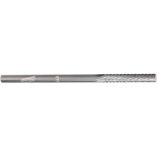H364E tungsten carbide laboratory cutter for acrylics, plaster and metal alloys. HP 104 shank for laboratory handpiece, Size 023 (2.3mm) diameter, with 15mm working length.