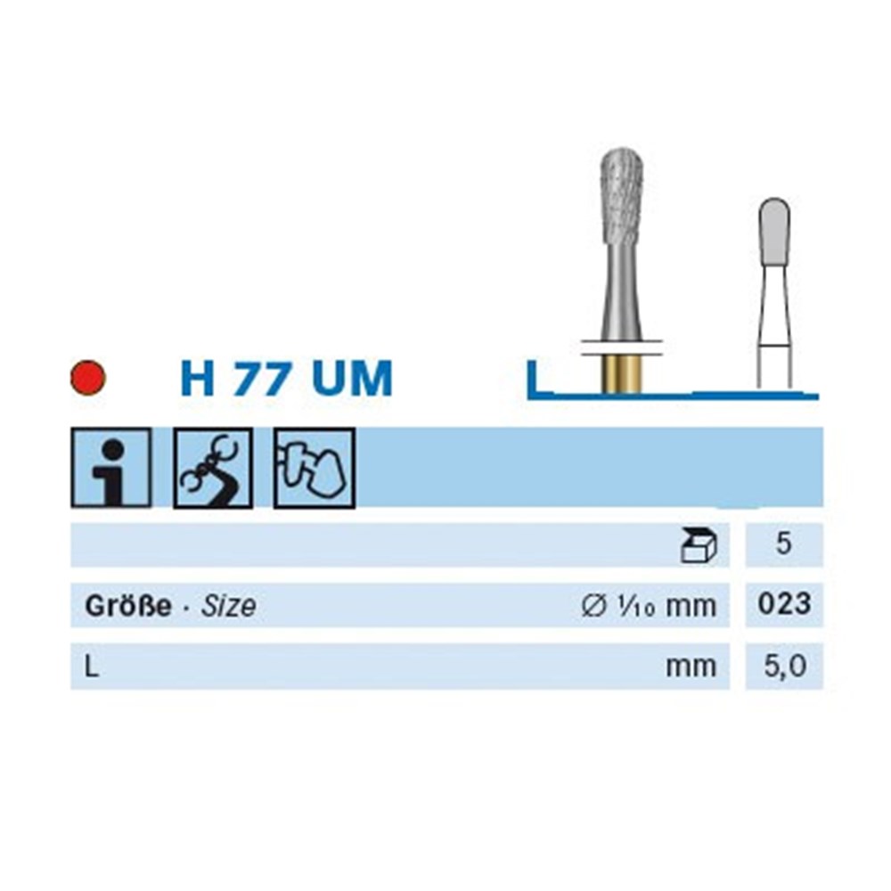 Komet Tungsten Carbide Bur - H77UM-023 - Cutter - Straight (HP), 5-Pack