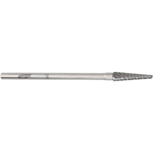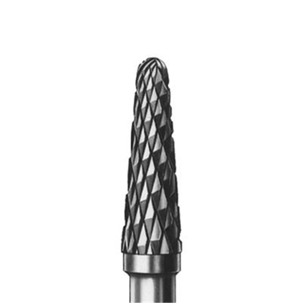 H79E tapered round tungsten carbide. HP 104 shank for laboratory handpiece Size 031 (3.1mm) diameter with 13mm working length. For acrylics, plaster and metal alloys.