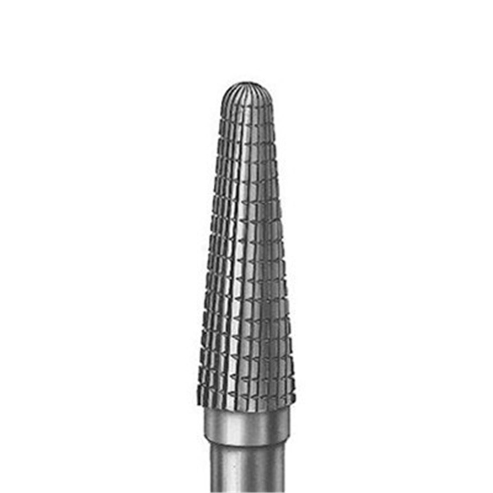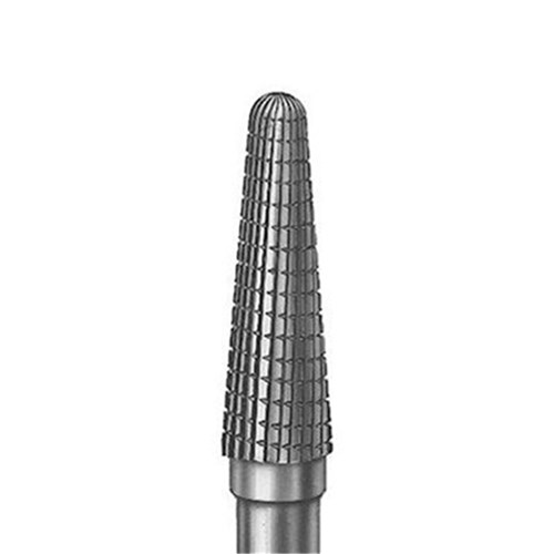 H79FSQ tapered round tungsten carbide fine. HP 104 shank for laboratory handpiece Size 040 (4.0mm) diameter with 13mm working length. For hard or elastic acrylics and precious metals.