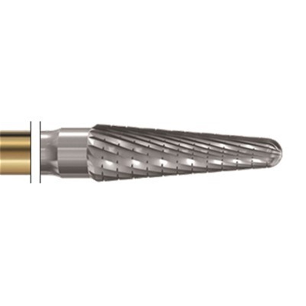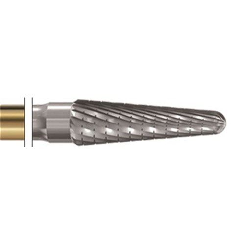 H79NEX tapered round tungsten carbide fine. HP 104 shank for laboratory handpiece Size 040 (4.0mm) diameter with 13mm working length. For non-precious metals and model cast alloys.