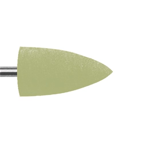 Fine high-shine polishing cone for working on denture acrylics. Extraoral use, mounted HP 104, with 10mm diameter and 19mm working length.