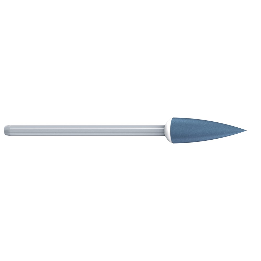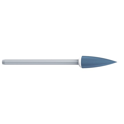 Blue coarse polisher for ceramics interspersed with diamond grit for trimming, polishing and high shine polishing. HP shank 104, size .055 wit 16.5mm working length.