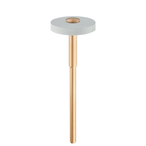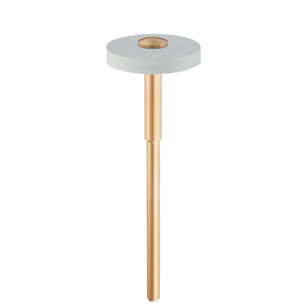Diamond interspersed polishers for zirconium oxide. Mounted HP 104 fine wheel, 17mm diameter with 2.5mm working length for high-shine polishing