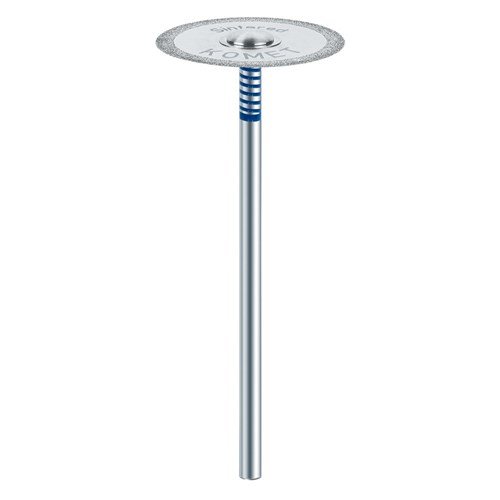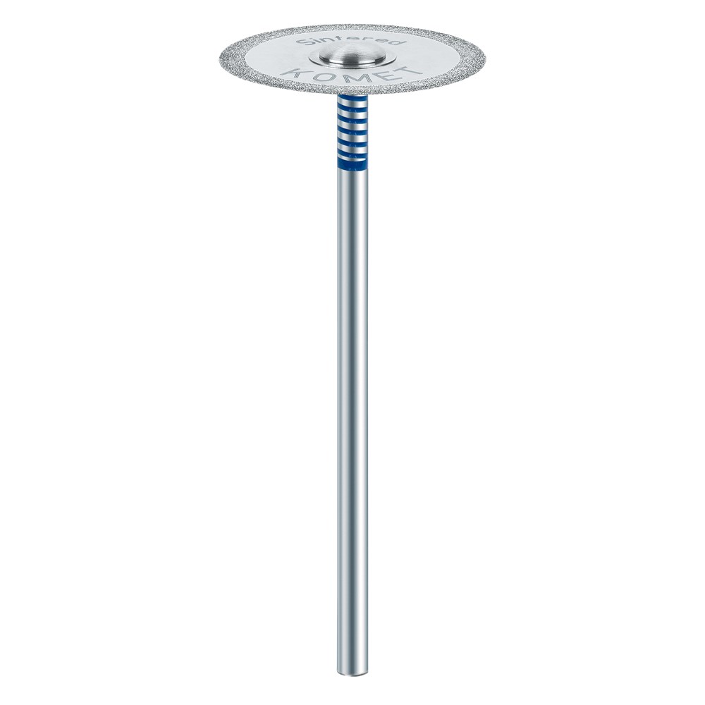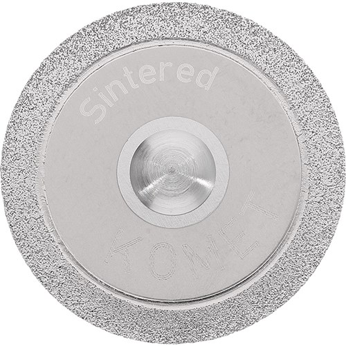 Medium grit diamond disc, mounted HP 104, 20mm diameter with 2mm coating, 0.17 length. Flexible, longer service life due to diamond interspersed edge for separating of ceramics
