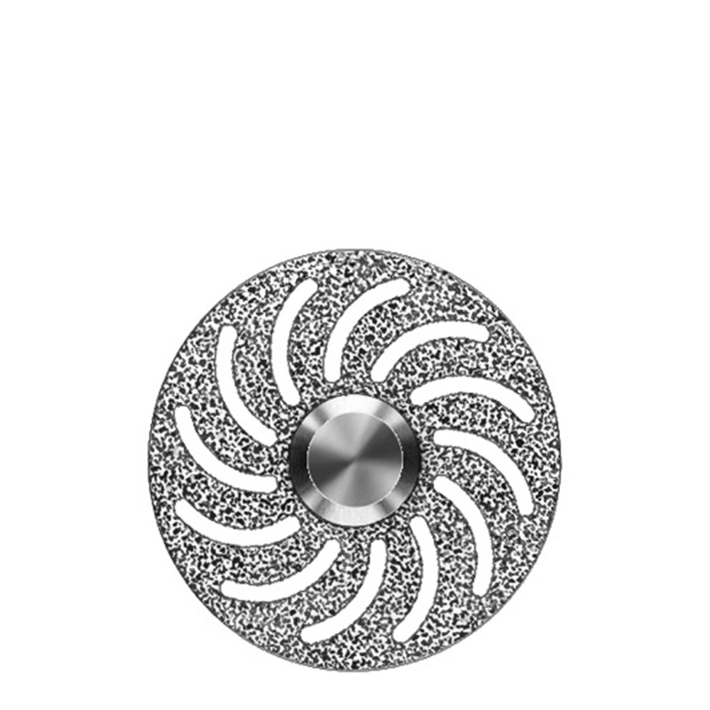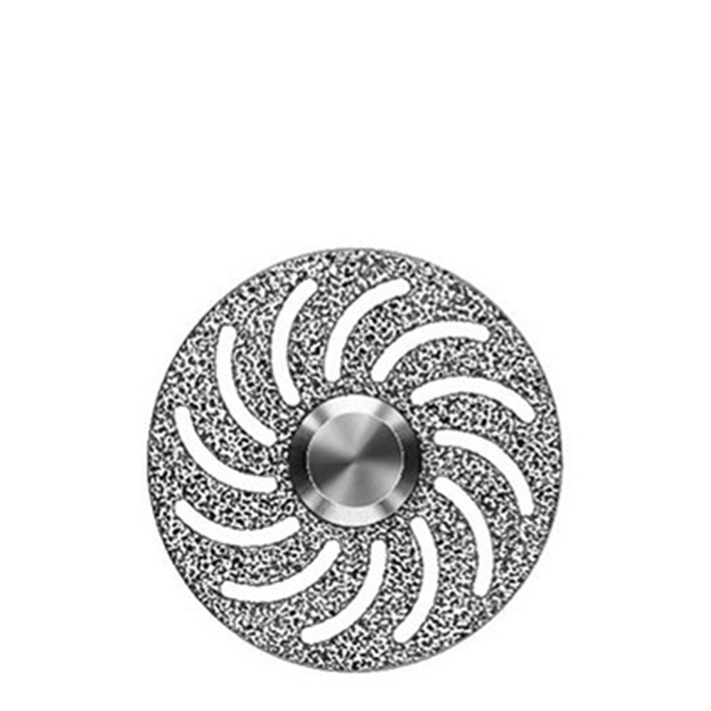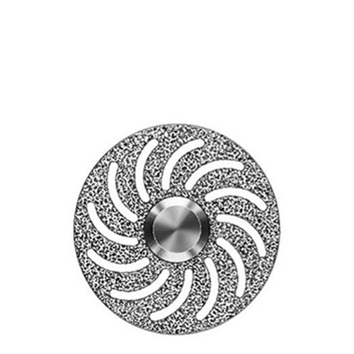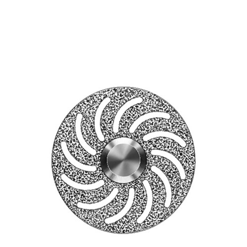 Hyperflexible double sided ultra fine grit diamond disc for super fine separating and contouring of ceramics. Mounted HP 104, 22mm diameter with 0.1mm length.