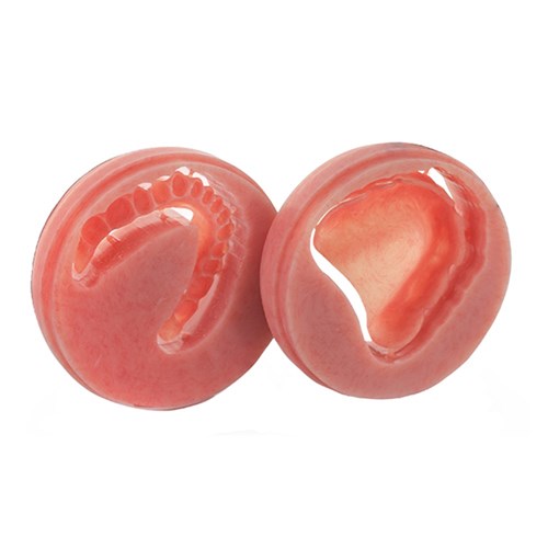 High-impact acrylic discs are able to be perfectly and accurately milled for denture base applications, without any melting of the material during production. The final product is extremely strong, vibrant, and aesthetic, with minimal finishing or polishing required.