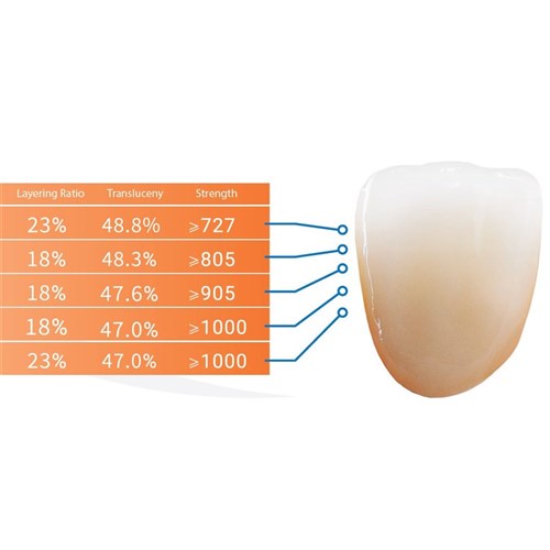 • 727MPa incisal blended to 1000MPa cervical