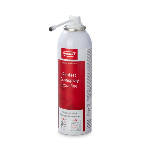 Thanks to its micro-fine, homogeneous structure, Renfert-Scanspray extra fine can be applied very thinly,. Enhanced adhesion, especially on polished ceramics/metals and reflecting surfaces.