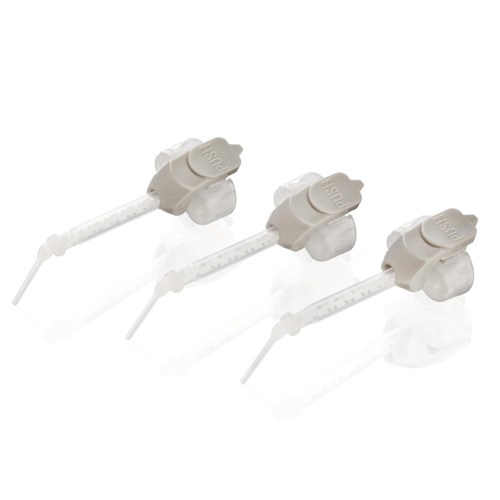 The economic “Push and Click” mixing tips can easily be attached and removed.