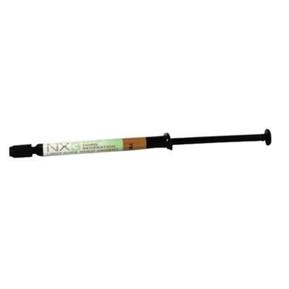 Universally indicated for all indirect applications, NX3 Nexus Third Generation is a permanent resin cement system with an innovative chemistry for unmatched esthetics, adhesion and great versatility. Delivery system choices include an automix syringe for dual-cure indications and a light-cure cement for multiple units where unlimited work time is needed. The automixing dual-cure cement can be used for all indirect applications, including veneers. With Kerr’s proprietary amine-free initiator system and optimized resin matrix, NX3 is the first truly colour-stable adhesive resin cement.