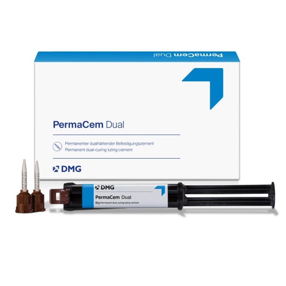 PermaCem Dual is your versatile, dual-curing classic for secure, permanent luting of various materials – whether metal, composite or all-ceramic. The cement combines the advantages of the biocompatibility found in glass ionomer cements with those of composites (insolubility, good marginal fit) and is pleasantly easy to work with. The thin film thickness ensures maximum accuracy of fit.