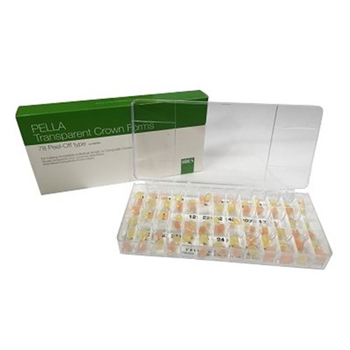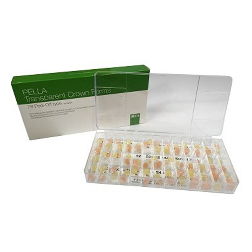 For making individual crowns of synthetic resin. Odus Pella crown forms are packaged with coloured cotton wool. Yellow - Pella right crowns