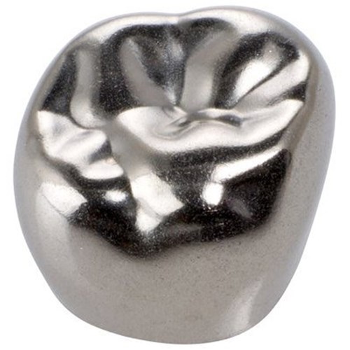 Solventum Stainless-steel Molar Crowns are pre-belled, pre-crimped, and pre-festooned for minimal trimming and contouring when placing the crown to fit. These crowns are work hardened and have a decreasing cervical wall thickness for better marginal adaptation.