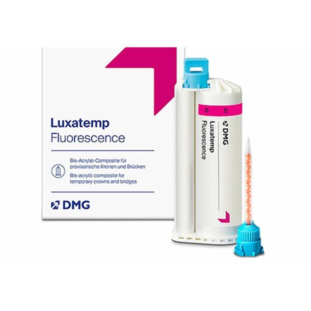 DMG Luxatemp Fluorescence - Temporary Crown and Bridge - Shade A3 - 76g Cartridge, 1-Pack and 15-Pack Mixing Tips